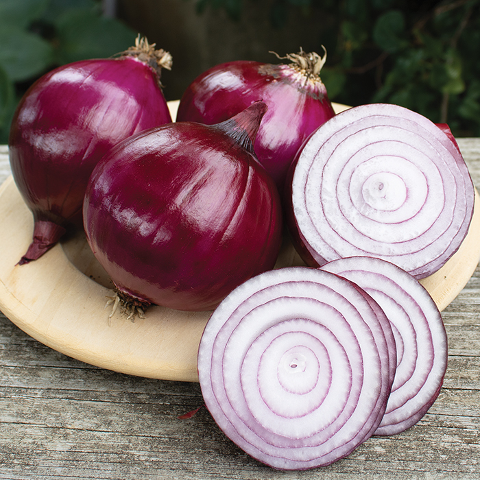 100-120 Day. Long Day. The best red onion for northern regions. Requiring 15 hours of day length to bulb, the red, globe shaped, 3-4", pungent onions have a deep internal red color that continues to develop in storage. Can be stored for up to 10 months. Available as plants only,